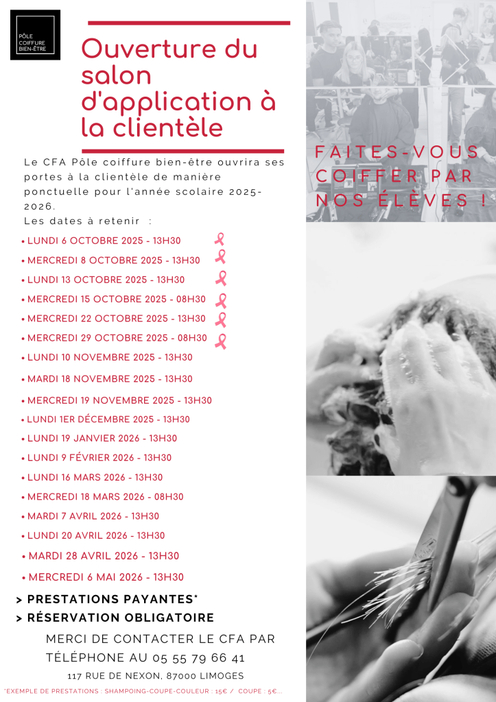 Chaque année, le CFA Pôle Coiffure Bien-Etre ouvre ses portes à la clientèle avec des prix préférentiels afin que les élèves puissent s’entrainer.